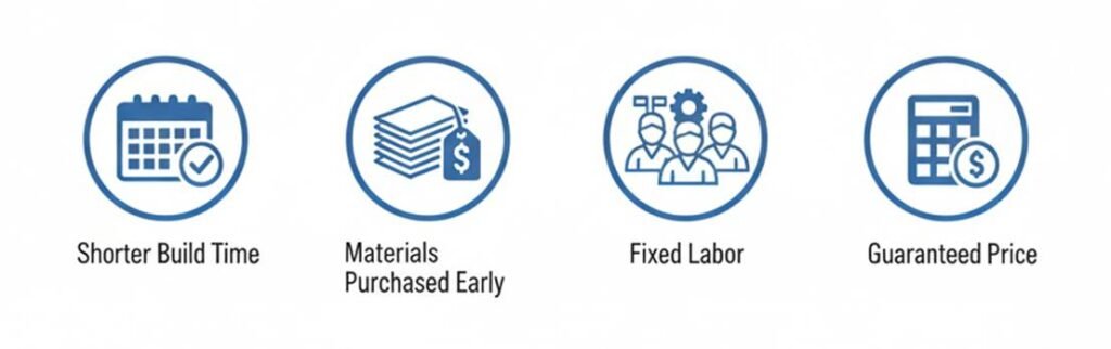 One of the biggest fears when building a home is cost overruns. Weather delays, labor shortages, and material price changes often push traditional construction far beyond the original budget.